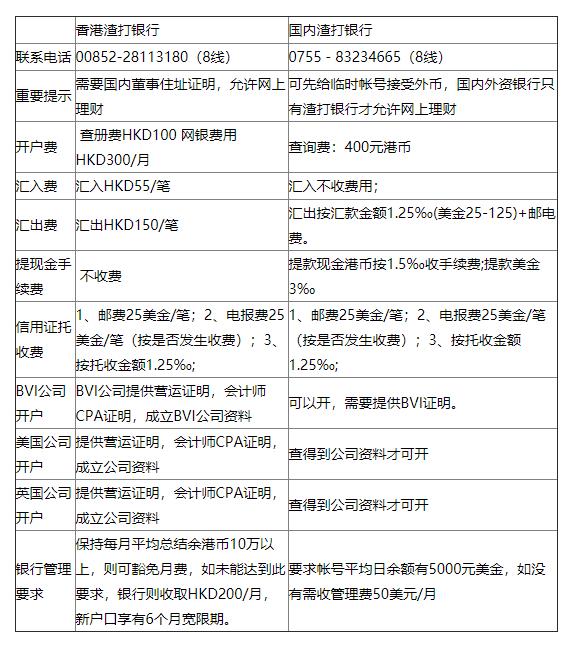 以下是香港渣打銀行與國內(nèi)渣打銀行開戶情況相比較:
